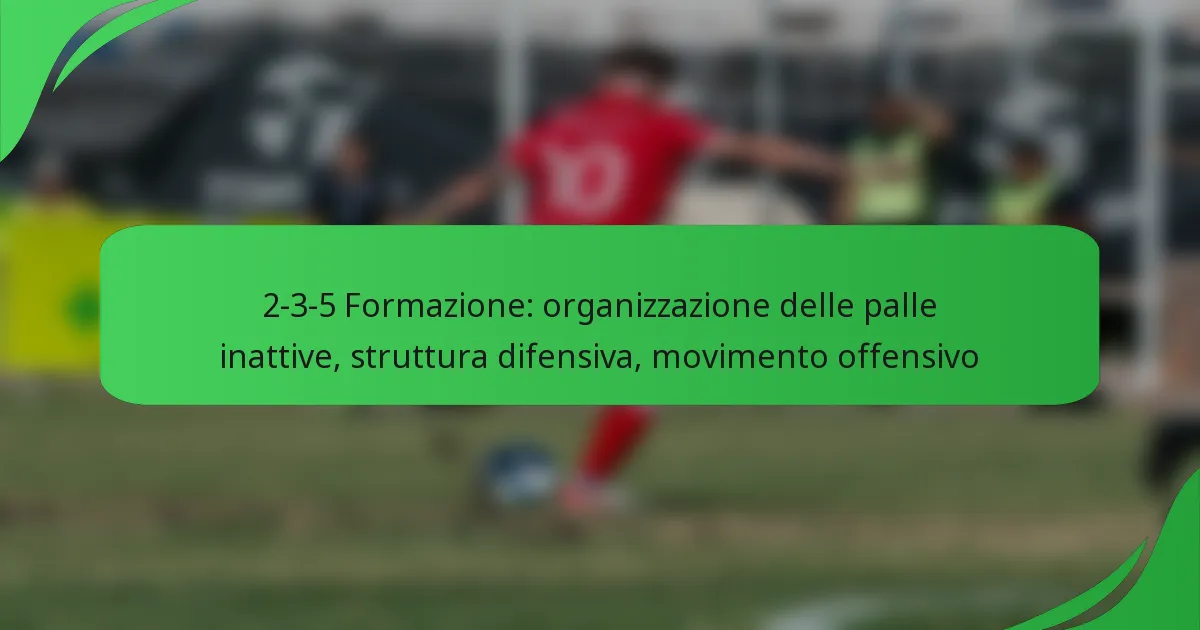 La formazione 2-3-5 è una strategia calcistica classica che prevede due difensori, tre centrocampisti e cinque attaccanti, dando priorità a un approccio offensivo aggressivo. Organizzando efficacemente le situazioni da fermo e mantenendo una solida struttura difensiva, le squadre possono ottimizzare le loro prestazioni sia in fase offensiva che difensiva, facilitando transizioni rapide e contropiedi. Key […]